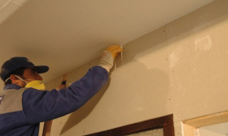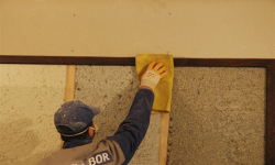 In Form von Füllung durch Blasen oder Verlegen unter der Beschichtung auf den Innenflächen von Gebäuden.